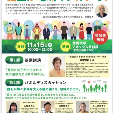 2025.11.05 職親プロジェクト九州沖縄支部イベントに高江洲社長が登壇 11月15日土曜日 沖縄大学にて職親プロジェクトの講演会・パネルディスカッションが 開催されます。 弊社の高江洲社長も登壇します。 学生サービスセンターは引き続き学生だけじゃなく一般、貧困世帯など様々な方々を サポートし...