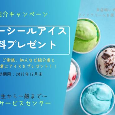 2025.11.05 新規登録者・登録者紹介者全員へブルーシールアイスクリームを無料プレゼント💛 新規登録者・登録者紹介者全員へブルーシールアイスクリームを無料プレゼント💛 学生サービスセンターでは 新規登録者キャンペーンとして来店されたから全員にアイスクリームを無料で プレゼントいたします。※登録...