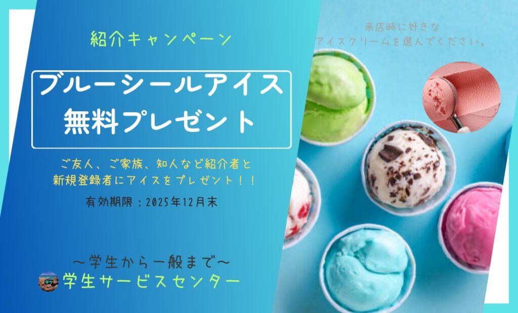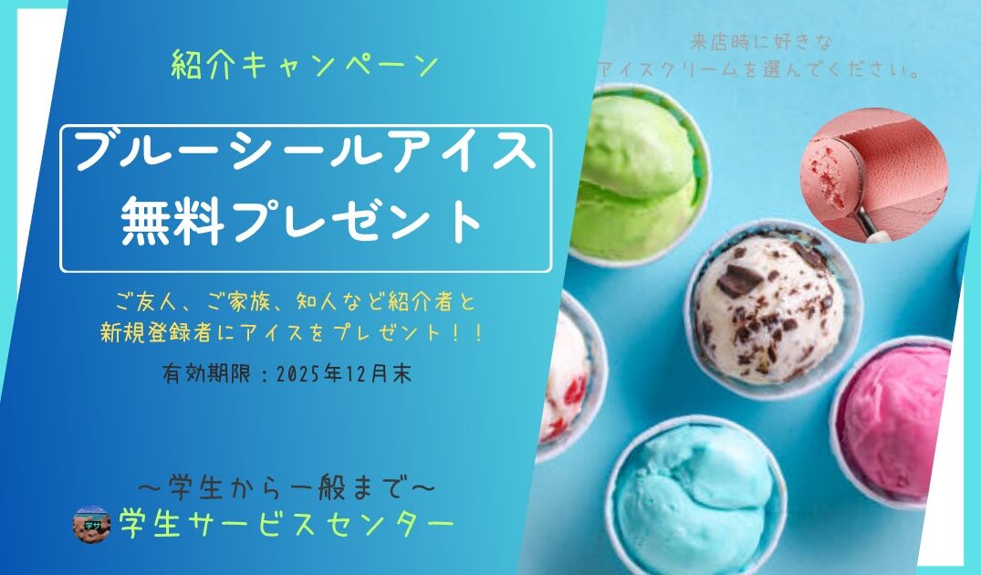 新規登録者・登録者紹介者全員へブルーシールアイスクリームを無料プレゼント💛